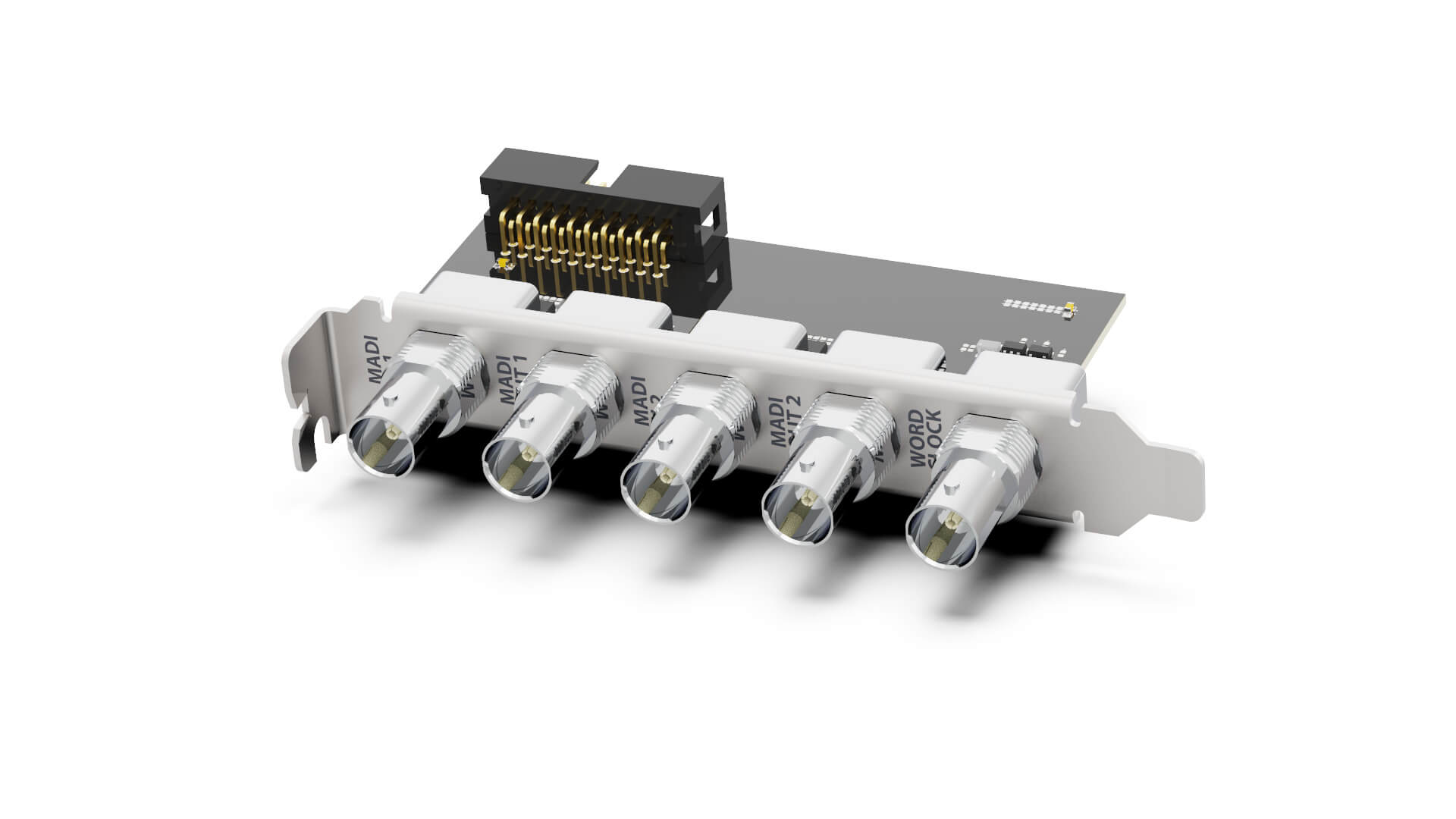 HDSPe AoX Expansion Board Koaxial Version: 4x BNC-Anschlüsse mit MADI I/O: 128/64/32 Kanäle bei 48/96/192 kHz Abtastrate.