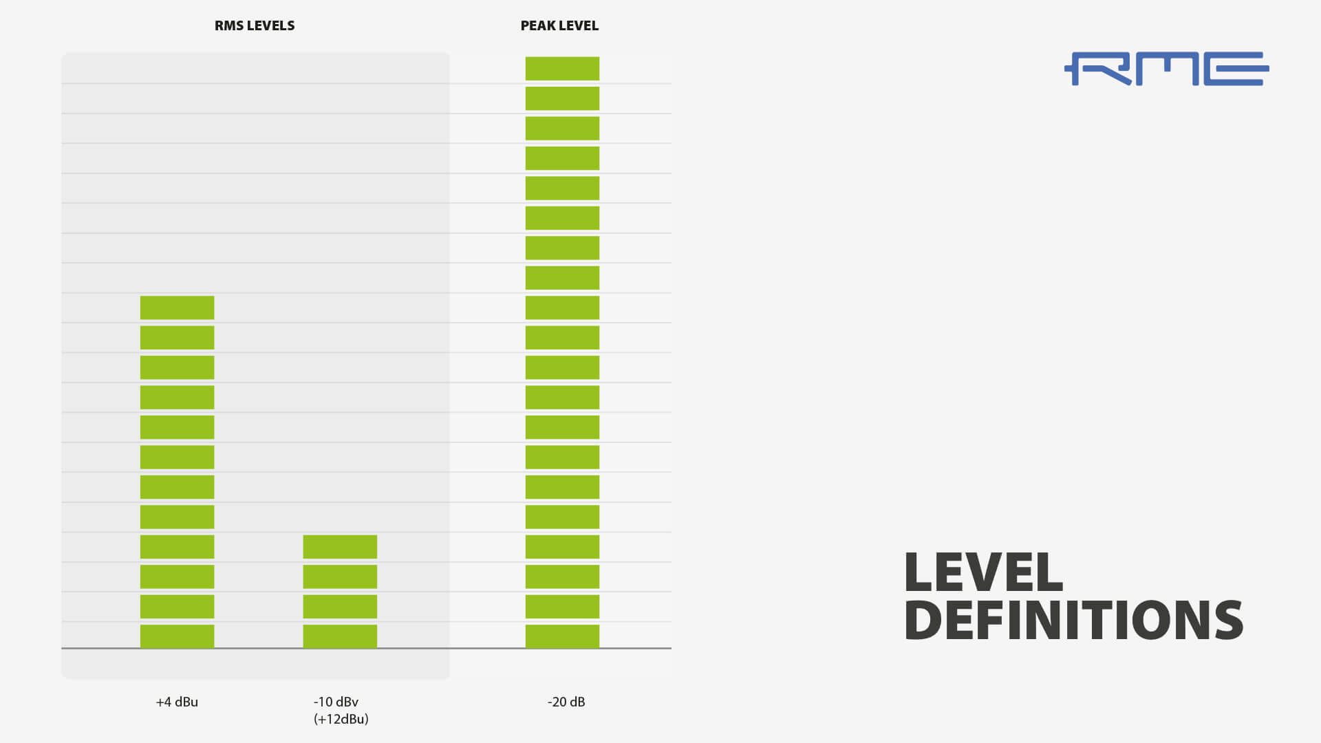 These reference levels are also found in all other RME devices. Therefore they are fully compatible to each other