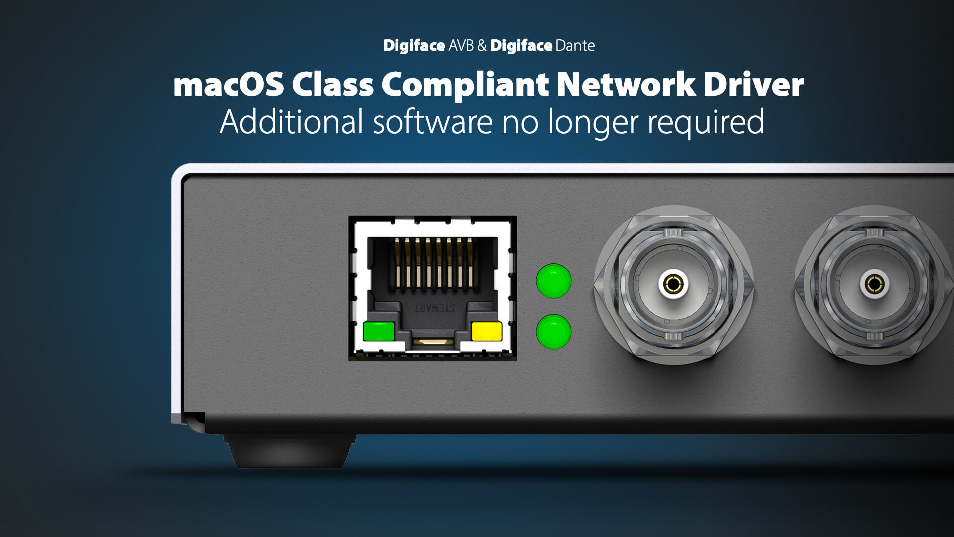 Zusätzlich nutzen Digiface Dante und Digiface AVB nun Apples nativen Netzwerktreiber für ihre internen Netzwerkanschlüsse, was die Installation vereinfacht und den Einsatz von Drittanbieter-Software überflüssig macht.