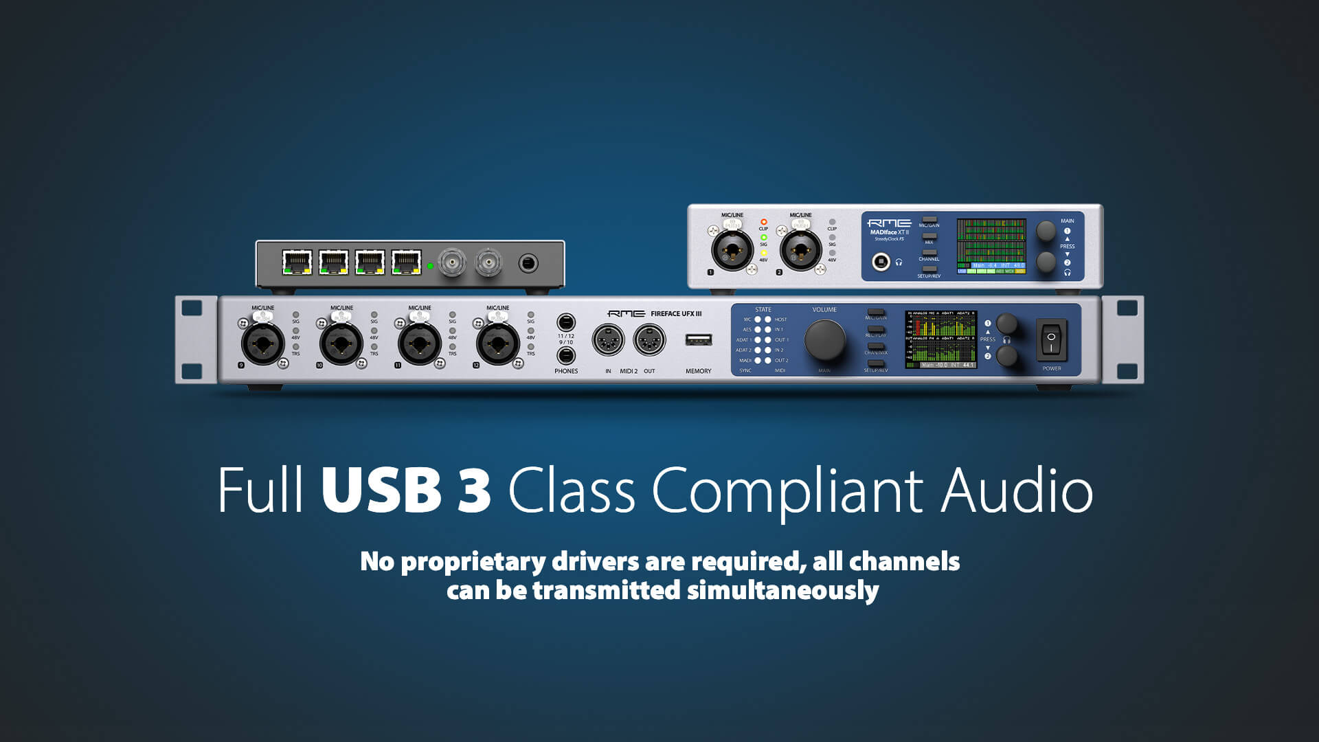 RME bietet nun drei Treiberoptionen für macOS mit Apple Silicon und USB 3 Interfaces an, darunter das Fireface UFX III, MADIface XT II, Digiface Dante, Digiface Ravenna und USB.IO: