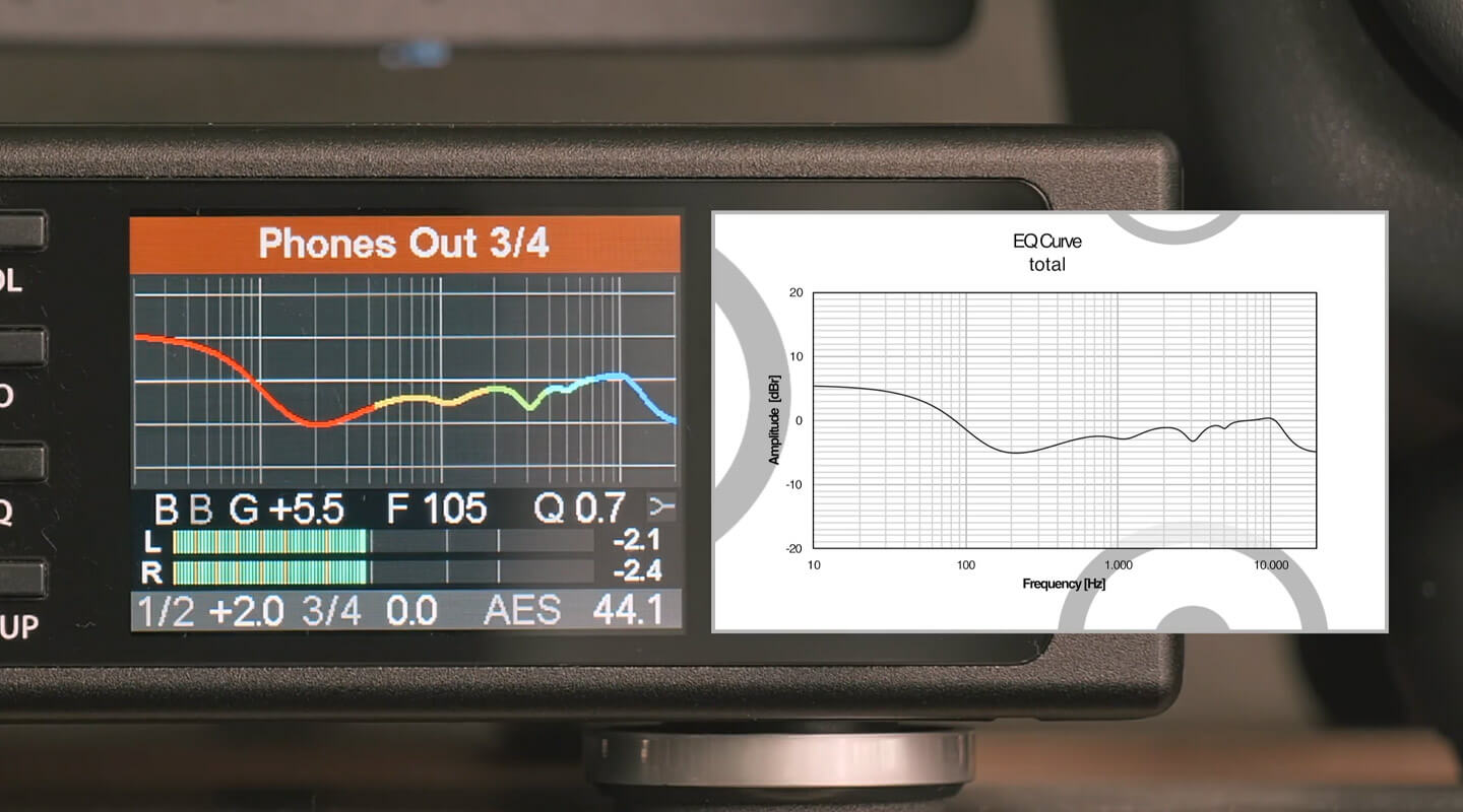 Now that you dialed in the compensation curve make sure to save the PEQ in one of the 20 memory slots. In the EQ menu push encoder 2 several times until ‘Save to push’ is in focus. Turn encoder 2 to select a free memory slot, then push encoder 2 for one second. After that you might change the name to a more meaningful one.